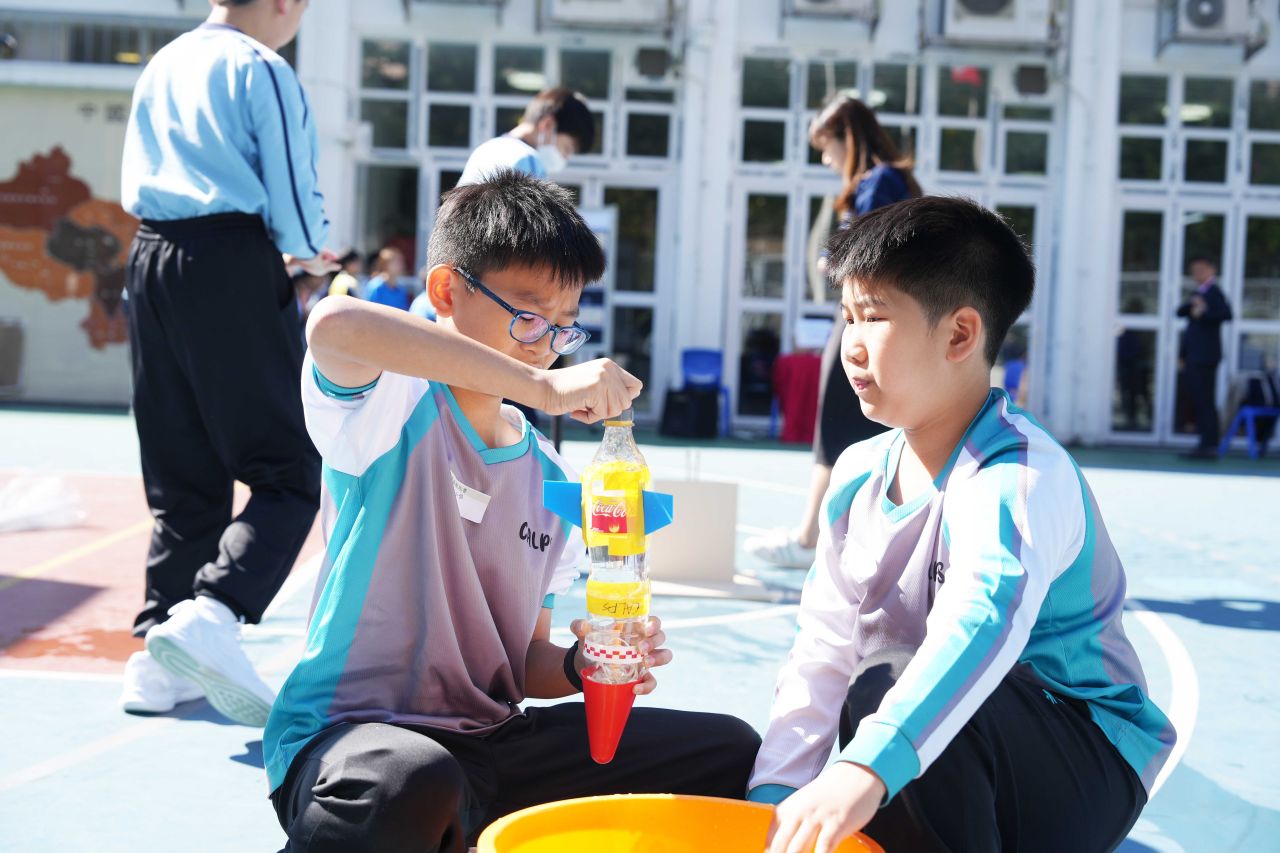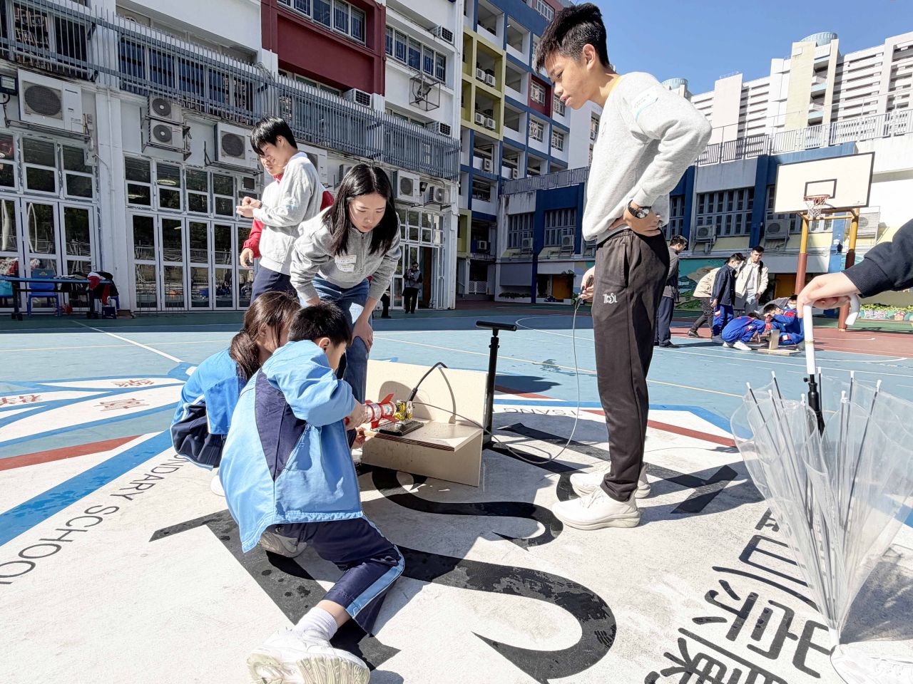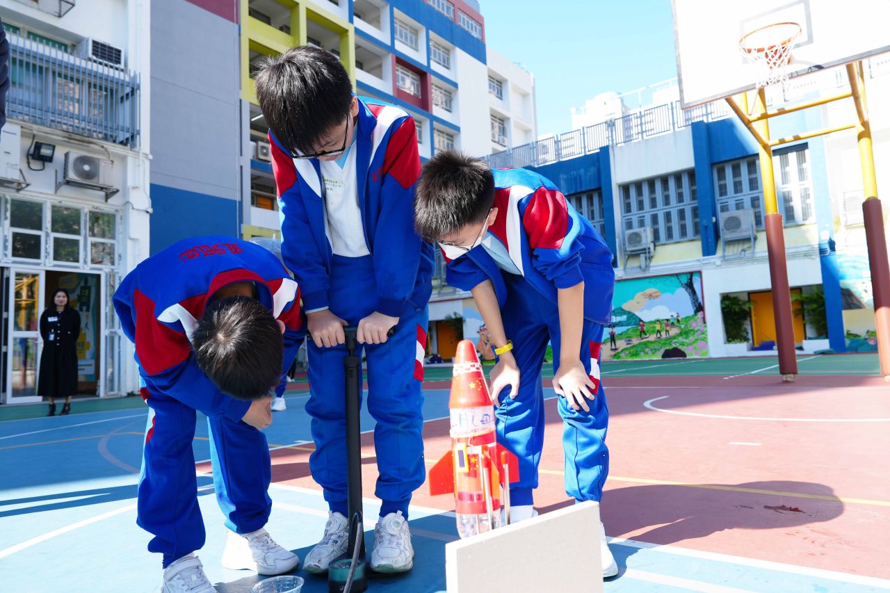 To deepen students' understanding of energy transformation and mechanics, as well as to cultivate their communication and collaboration skills, our school hosted the '4th Sha Tin District Primary School STEAM Competition - Water Rocket Launching Contest' on November 22, 2025. The atmosphere at the competition was vibrant, with each team focused on fine-tuning and launching their rockets. When the water rockets shot up into the sky, there were gasps of surprise from the audience, and the cheers following each successful launch were continuous.