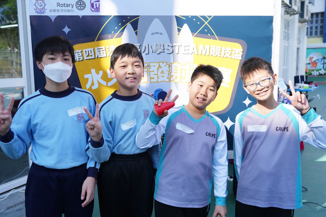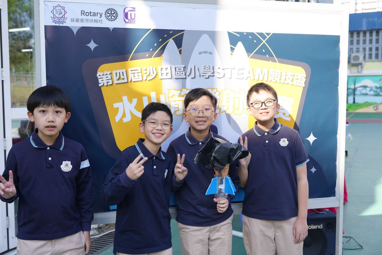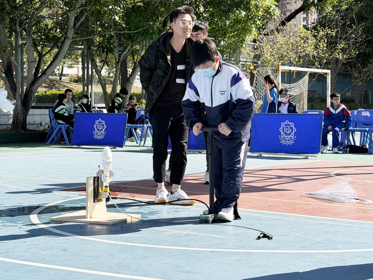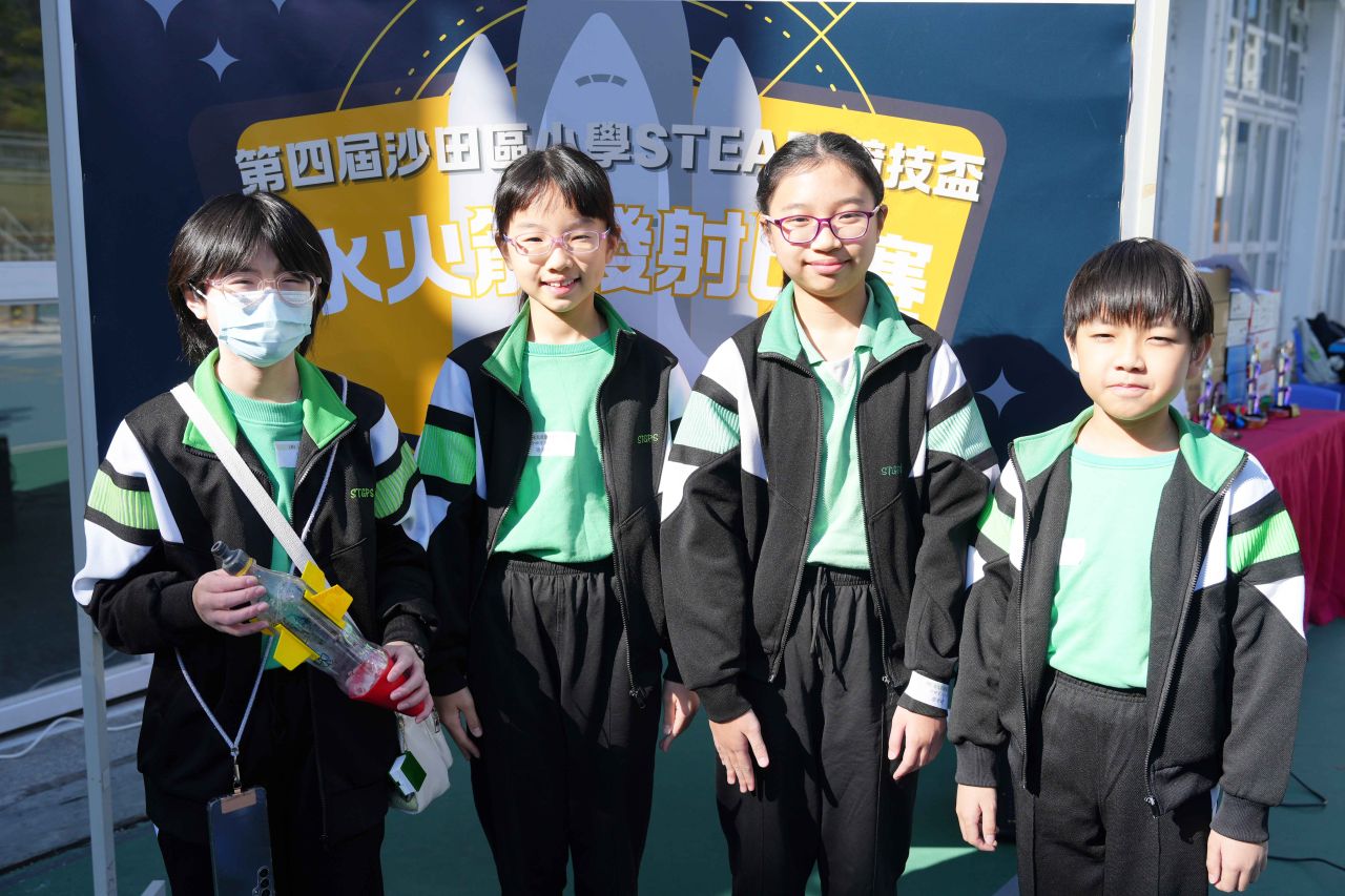 To deepen students' understanding of energy transformation and mechanics, as well as to cultivate their communication and collaboration skills, our school hosted the '4th Sha Tin District Primary School STEAM Competition - Water Rocket Launching Contest' on November 22, 2025. The atmosphere at the competition was vibrant, with each team focused on fine-tuning and launching their rockets. When the water rockets shot up into the sky, there were gasps of surprise from the audience, and the cheers following each successful launch were continuous.
