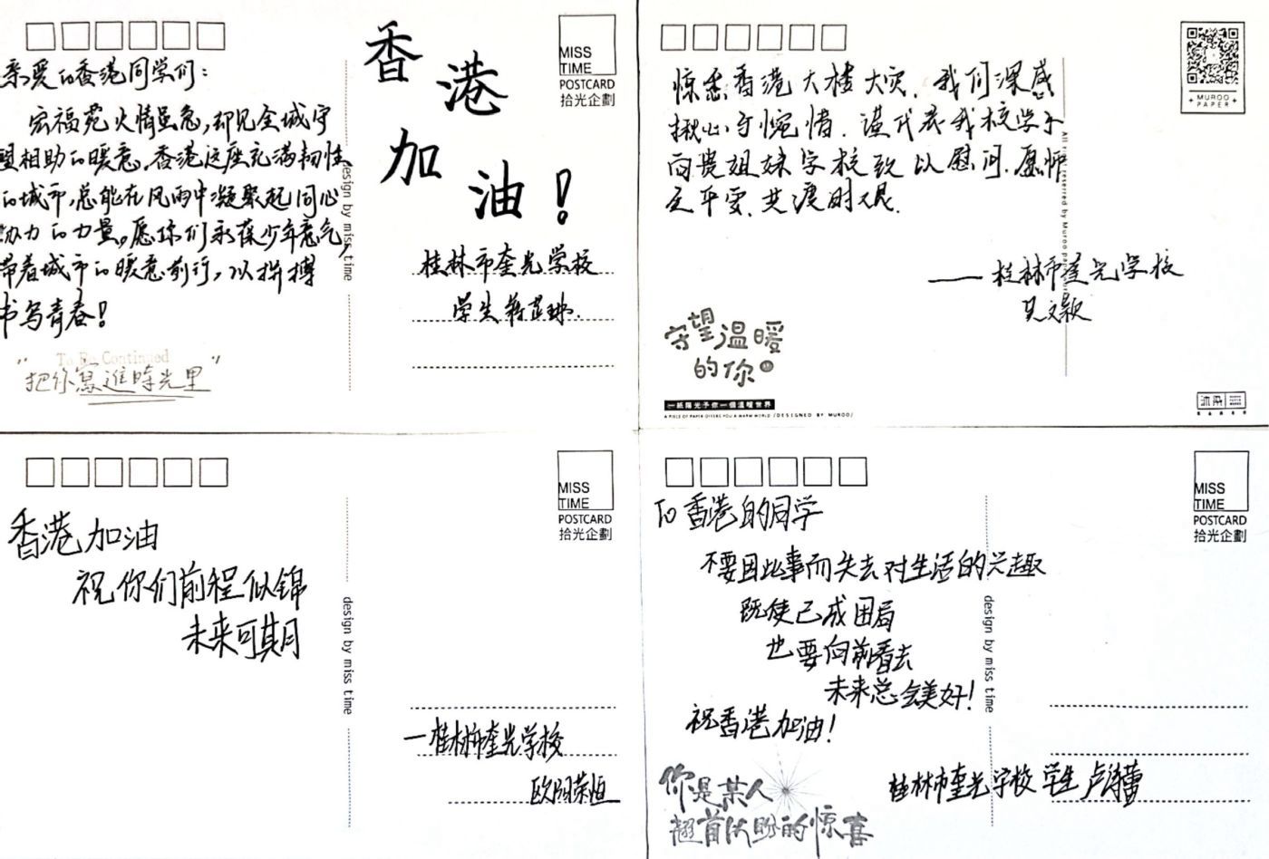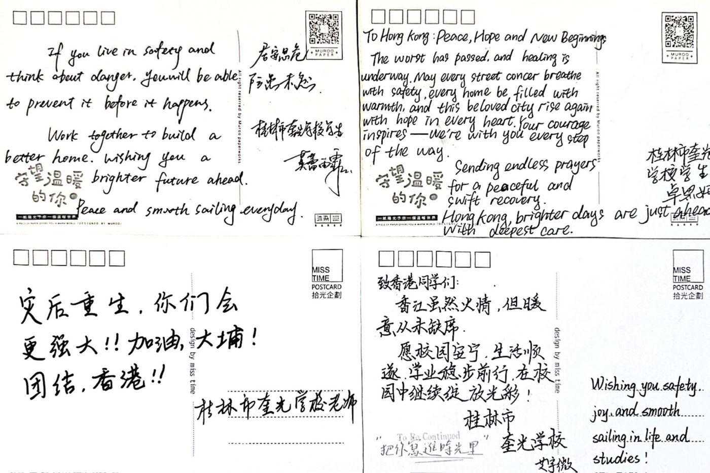 Recently, a serious fire incident occurred in Tai Po, causing significant losses to local residents and affecting the hearts of every citizen in Hong Kong. During this difficult time, we received condolences and care from our sister schools in Chinese Mainland, which deeply touched us. They specifically sent a batch of warm condolence cards, filled with support, encouragement, and blessings for us.