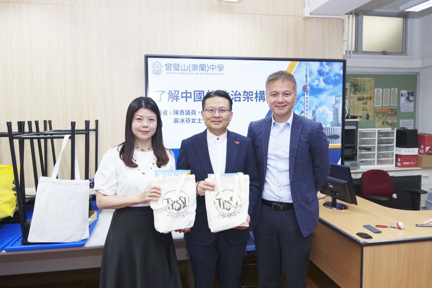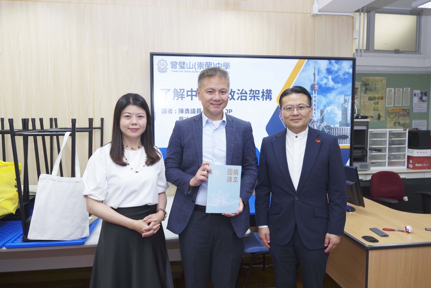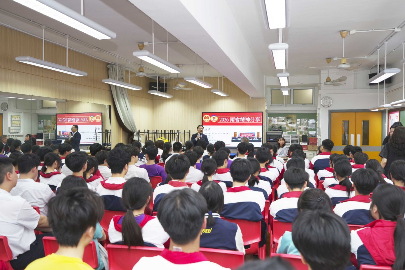 To enhance Secondary 5 students' understanding of China’s political framework, the National Education Committee organized a seminar on April 13 (Monday). We were honored to invite The Hon. Brave Chan, SBS, JP, and Ms. Wong Bing-fai to share their insights on the spirit of the National Two Sessions and the implications of the 15th Five-Year Plan for Hong Kong’s future development.