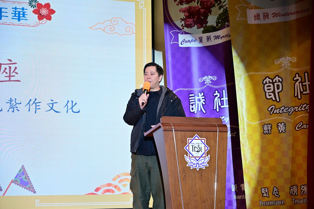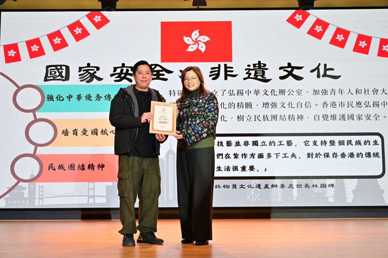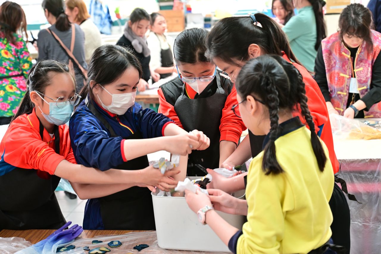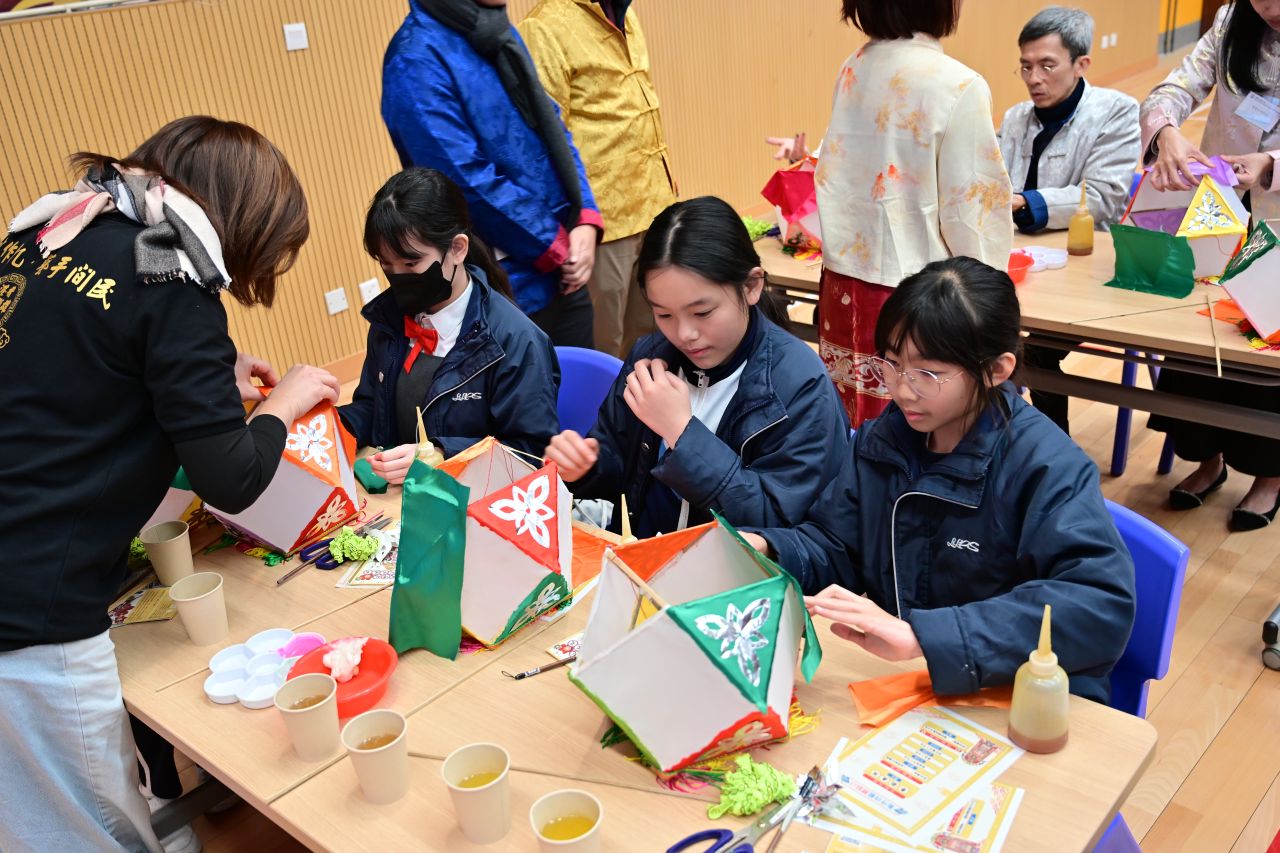 During the event, participants gained insights into the history of paper crafting through an educational seminar before joining a hands-on "Hexagonal Lantern Workshop." Students had the meaningful opportunity to hang their completed lanterns onto the city's largest traditional floral tribute (Fa Pau), symbolizing the passing on of light and blessings. The day featured a vibrant array of ICH-themed booths, including Rainbow Calligraphy, Song Brocade Pearl Wind Chime crafting, Hong Kong-style Egg Tart making, Indigo Dyeing, and Cantonese Opera showcases.