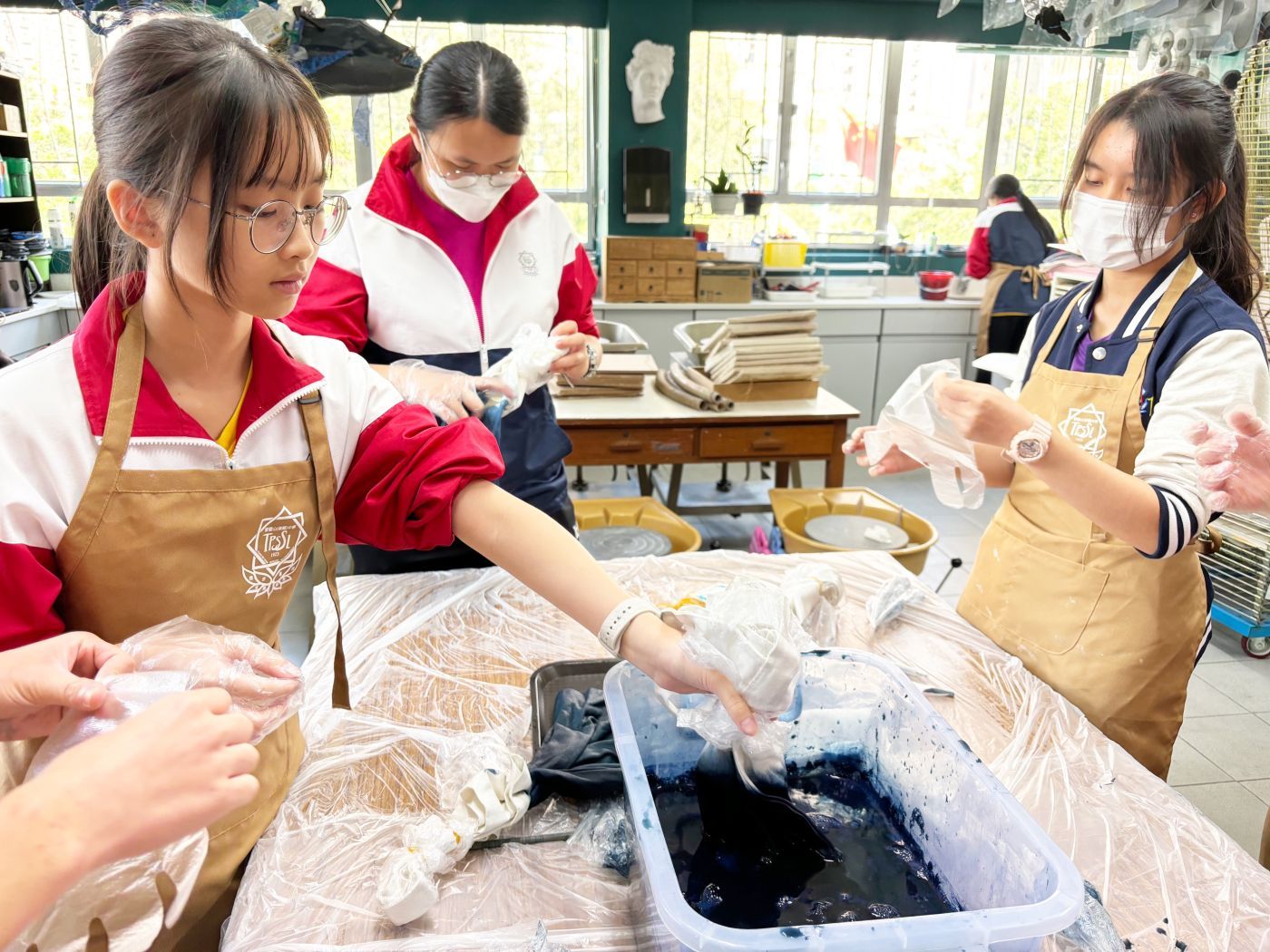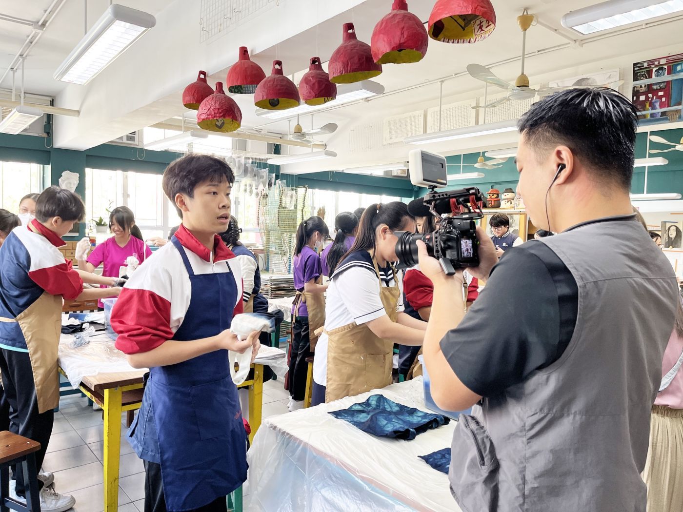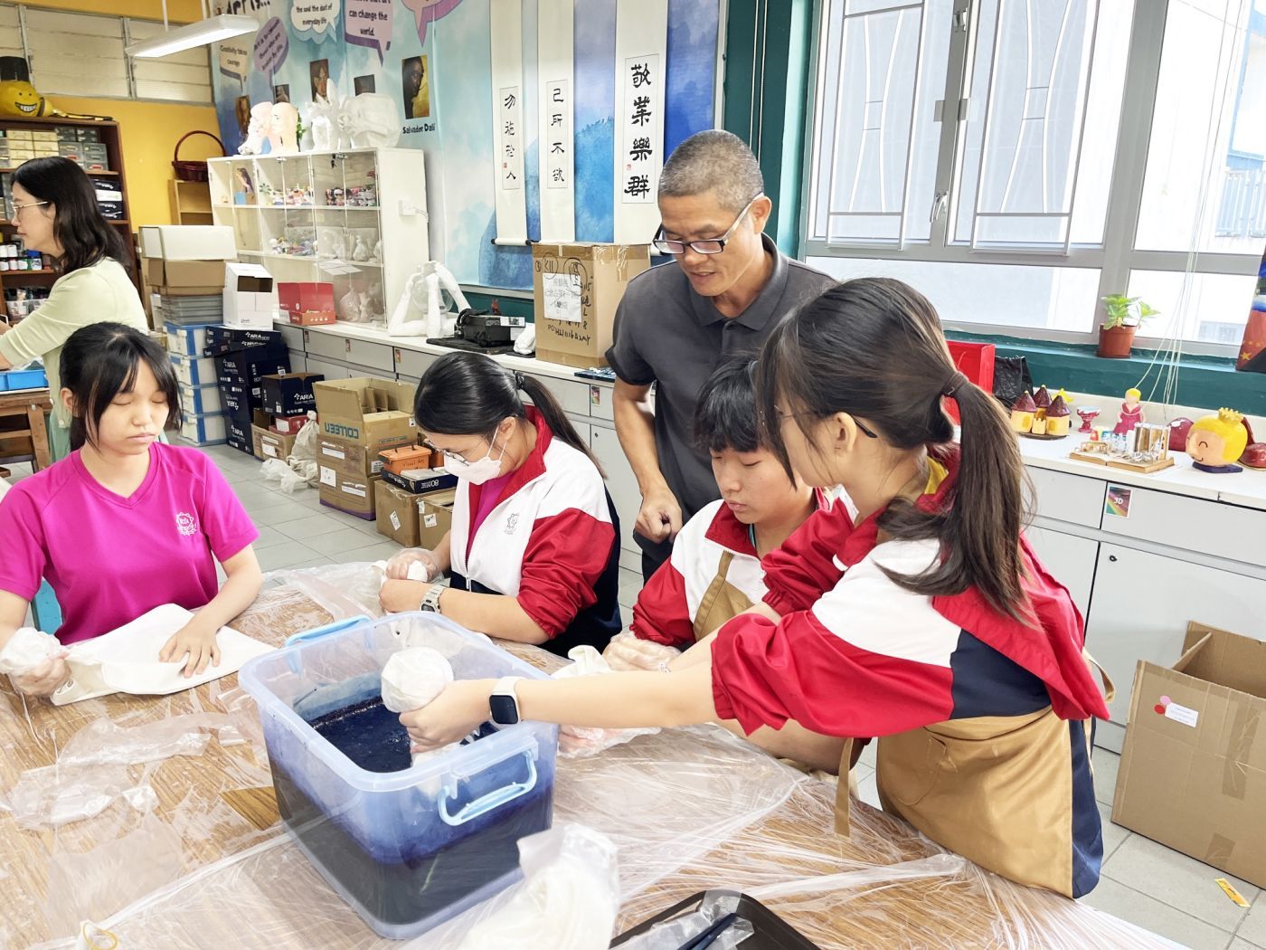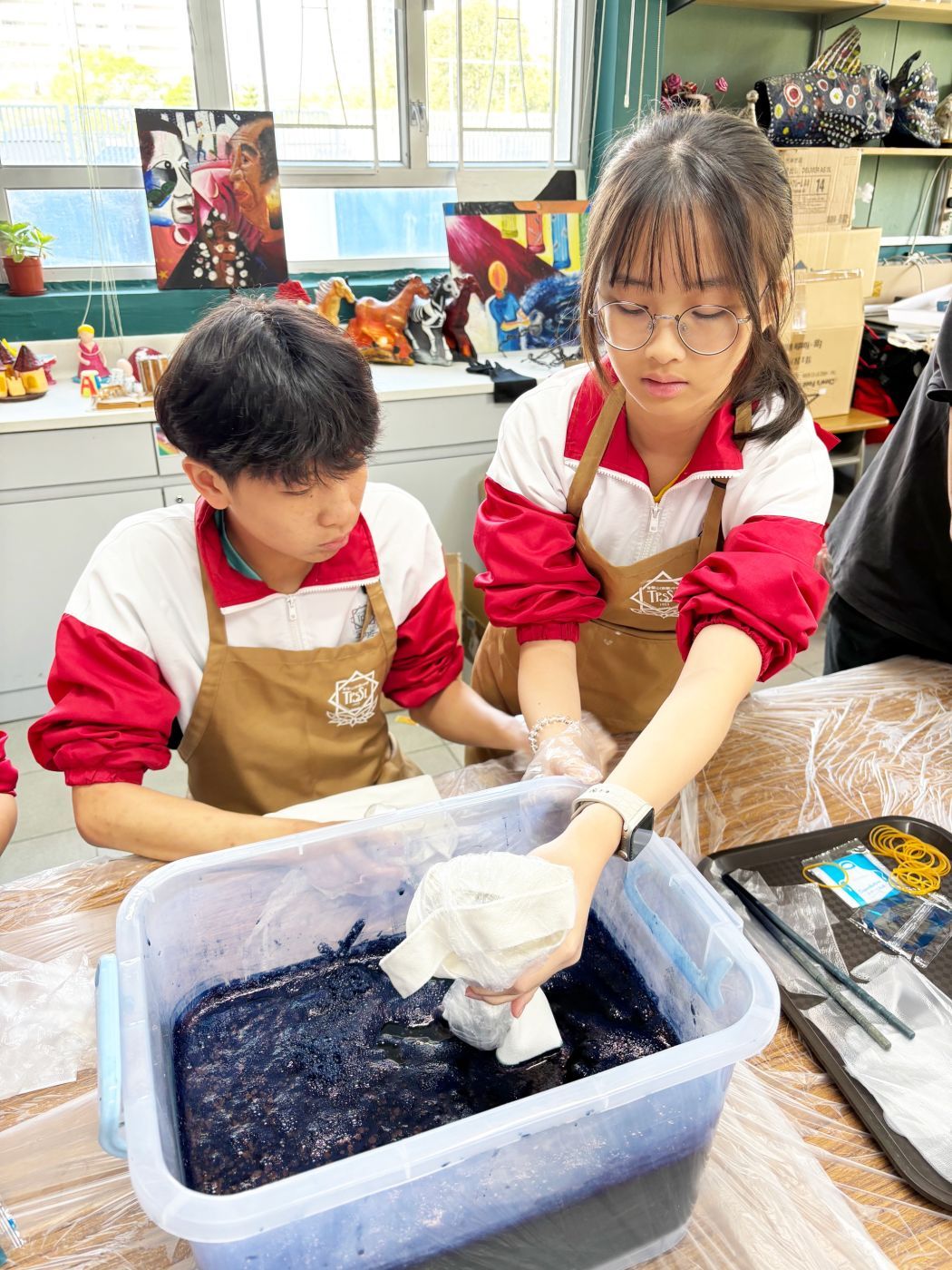 The art of Dongtou Blue, a unique traditional craft of weaving and dyeing, remains one of the last surviving forms in the Hakka region of Guangdong. This craft employs natural plant-based dyes and is produced through intricate processes, showcasing not only the exquisite nature of traditional craftsmanship but also embodying profound cultural significance. The "Dongtou Blue: Hakka Traditional Dyeing and Weaving Workshop," organized by the Federation of Hong Kong Guangdong Community Organisations in collaboration with the General Association of Hong Kong Heyuan Societies and the Hong Kong Community and Construction Association, provided students from our school with the opportunity to create their own indigo-dyed works, allowing them to experience the distinct charm of this ancient skill.