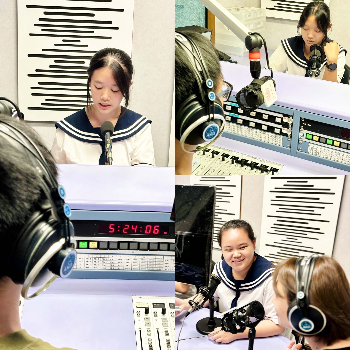 Form 4 students Li Zi Rou, Liu Tsz Yui, and Xu Ting Ting have been invited by Radio Television Hong Kong (RTHK) to participate in the program " Showcase Campus Highlights." During the episode, they engaged in a discussion with the host about classical poetry. The students shared their favorite classic poems, elaborated on their insights, and reflected on both the joys and challenges of their learning journey.