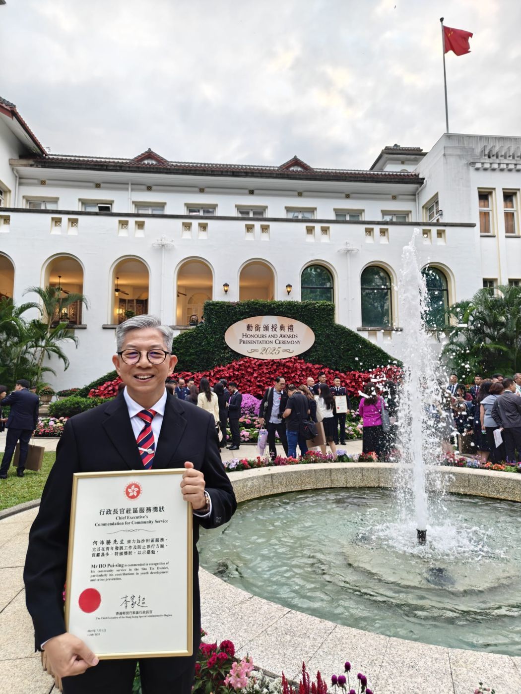 2025年度勳銜頒授典禮於2025年11月15日在香港禮賓府宴會廳舉行,何沛勝校長獲行政長官李家超頒授「行政長官社區服務獎狀」,以表揚其在推動青少年發展及防止罪行方面,貢獻甚多。