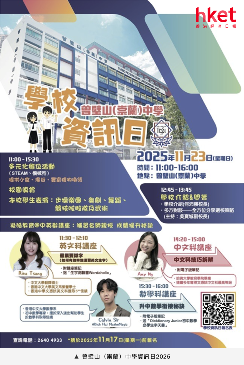 香港經濟日報——曾璧山(崇蘭)中學資訊日2025 全方位升學導航 × 名師中英數技巧傳授 × 互動校園體驗