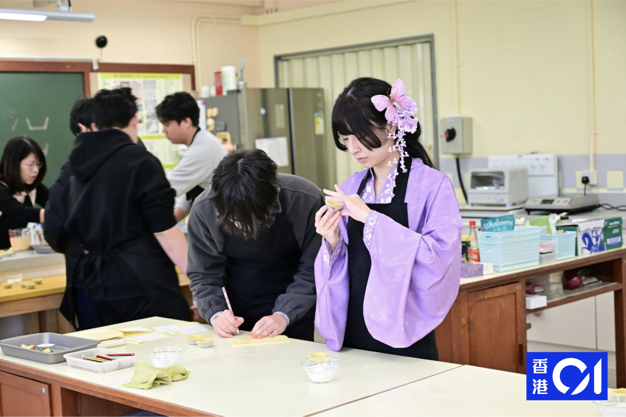 當天學校設有超過15項非遺互動攤位和工作坊,涵蓋多種傳統技藝體驗,學生正在製作港式蛋撻。(曾璧山(崇蘭)中學提供)