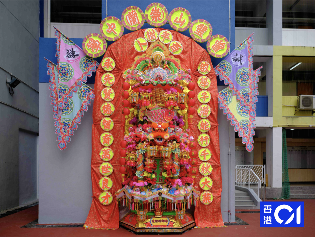 學校與香港非遺紮作藝術家許嘉雄師傅攜手打造全港學界最高、達5米的大型花炮。花炮加入了不少學校特色,包括校訓、辦學精神、社旗等。(曾璧山(崇蘭)中學提供)