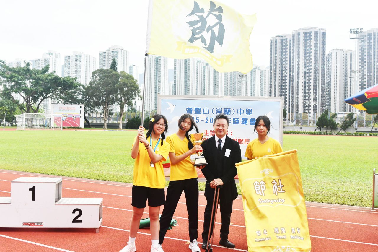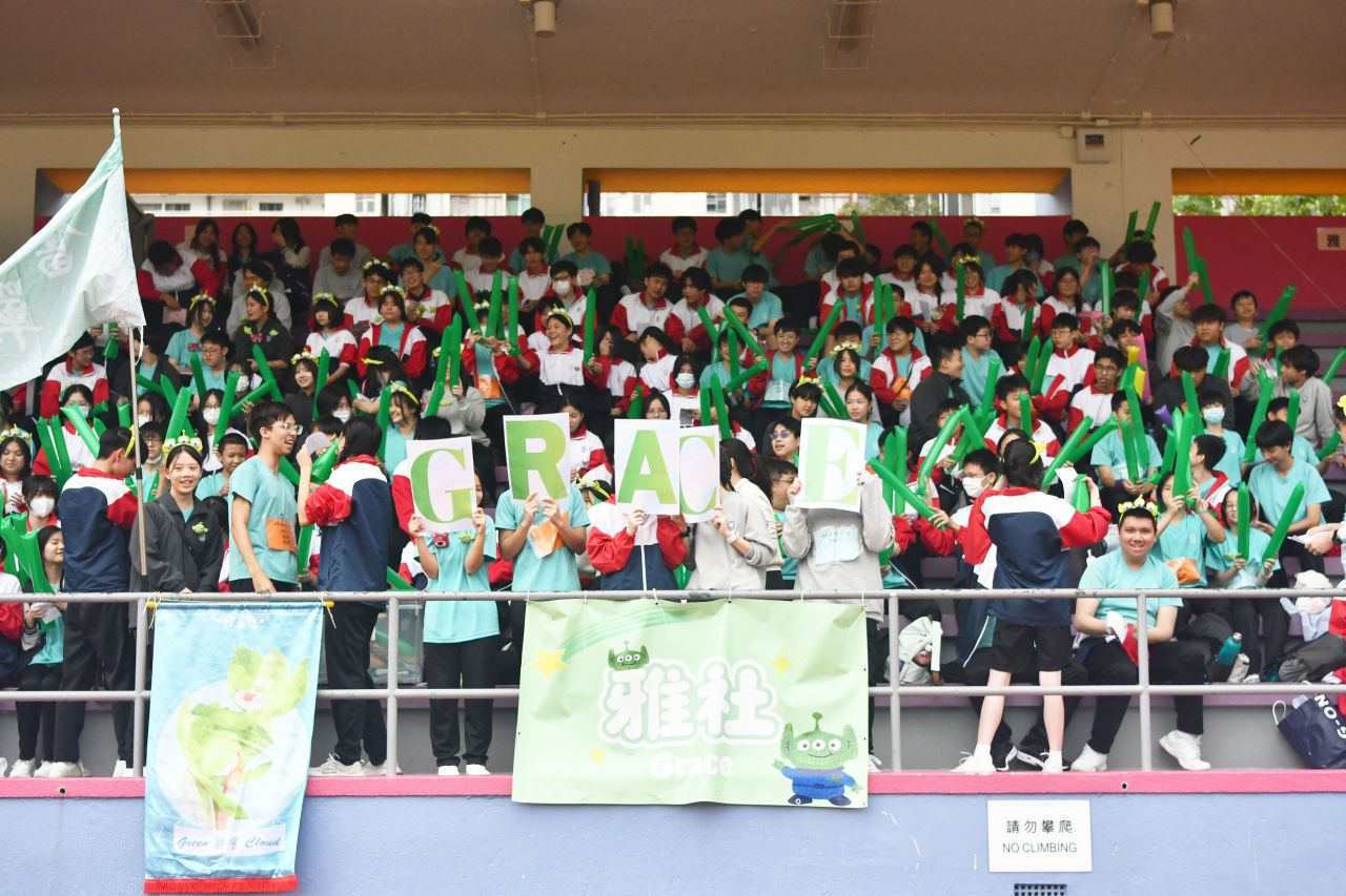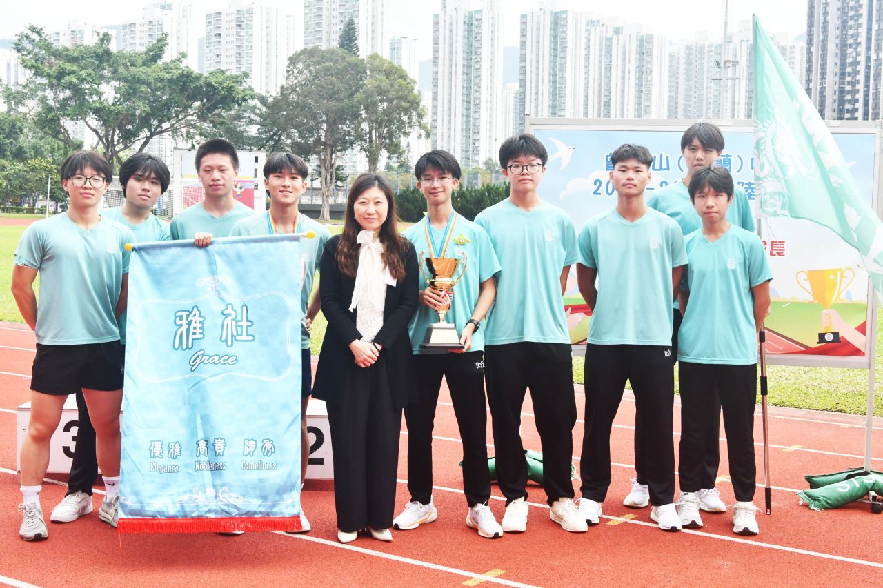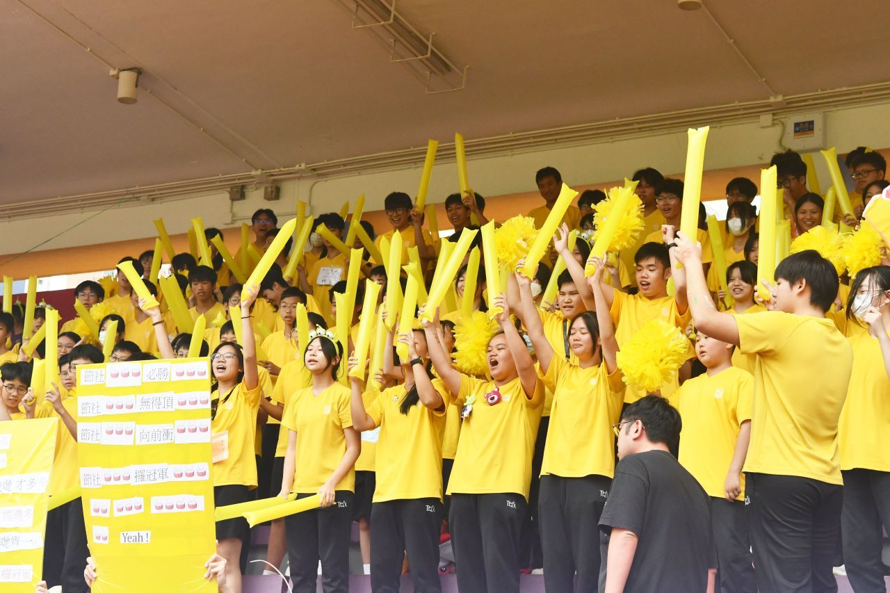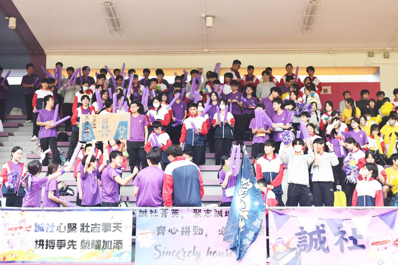 陸運會不僅是學生展現體育才能的舞台,更是他們學習與成長的重要契機。兩日賽事中,四社健兒奮力拼搏,展現出眾的體育才能,並以尊重、認真的態度完成各項比賽。看台上的同學亦表現出色,社際啦啦隊口號比賽氣氛熱烈,師生合力演出,口號響徹全場。班際接力賽中,各班選手互相切磋、奮力啟先,充分展現團隊精神與運動熱情。
