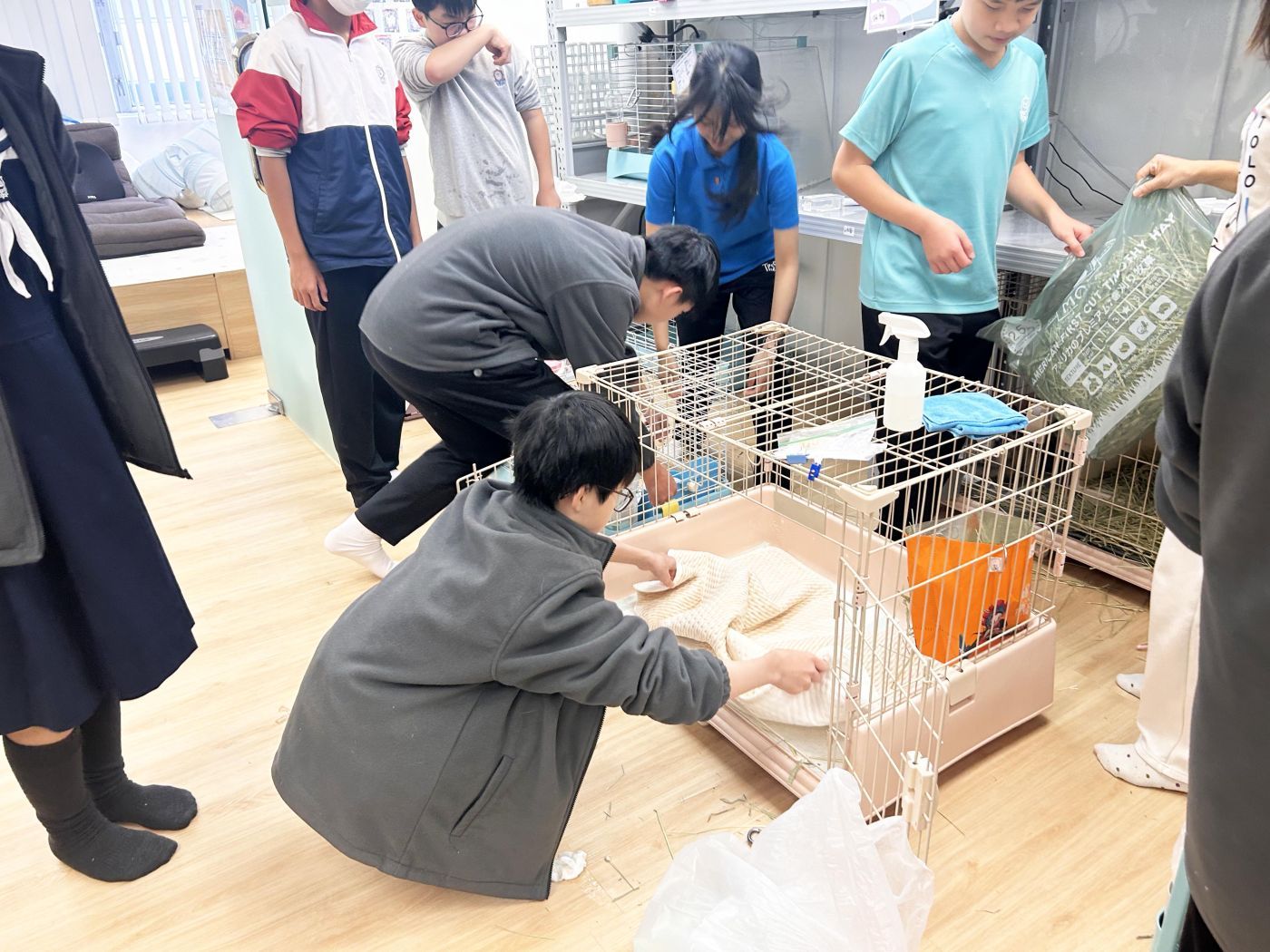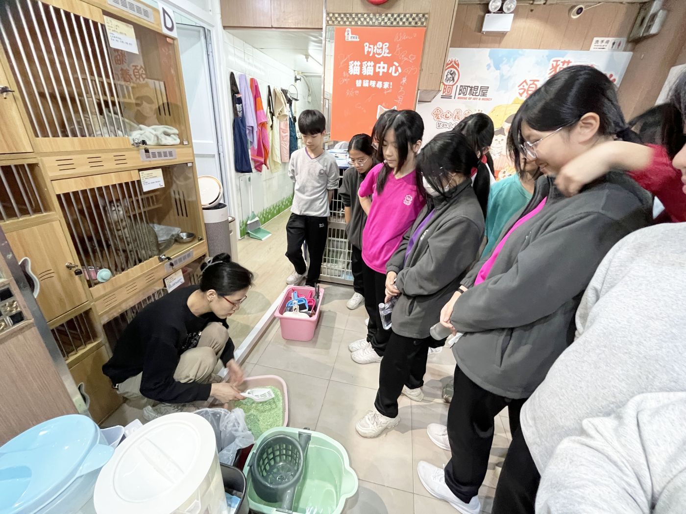 同學們熱情投入清潔狗隻、貓隻及兔子籠舍、餵食及陪伴動物等工作,親身體驗照顧流浪動物的過程,學習責任與關愛。